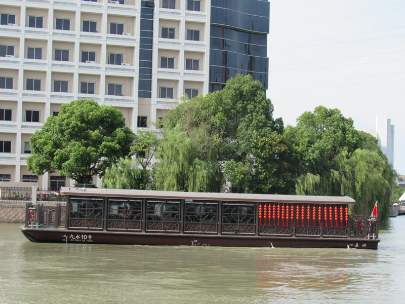 該船外觀及內(nèi)飾緊緊圍繞“紅船魂? 江南韻 ? 運河情?國際范”的主題展開,整體采用仿古木藝的中式裝修風格,充分彰顯嘉興江南水鄉(xiāng)、的文化魅力。